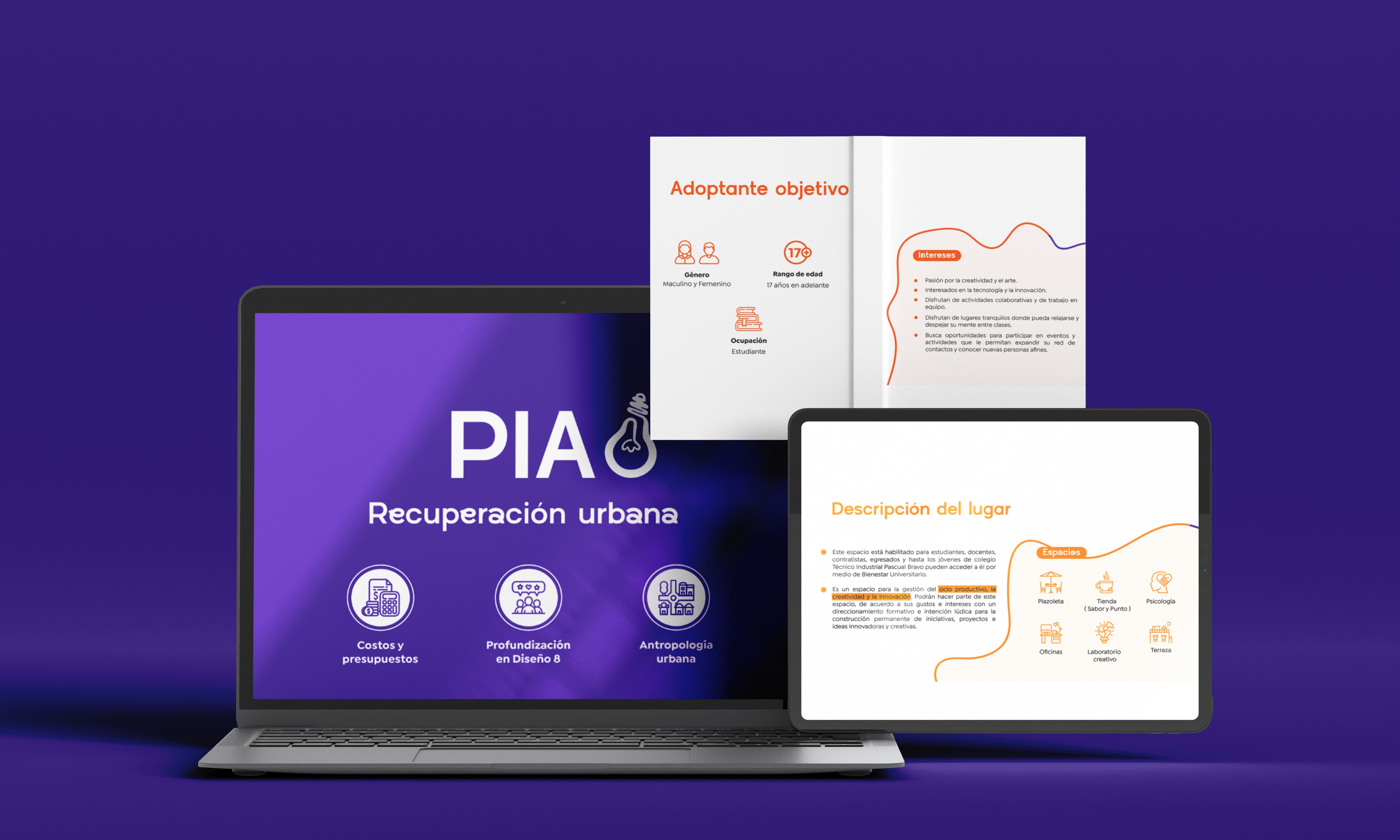 El proyecto de recuperación urbana del Laboratorio Creativo del bloque 26 de la Institución Universitaria Pascual Bravo se centró en resignificar un espacio subutilizado, mal señalizado y desconectado de la comunidad estudiantil. A partir de un diagnóstico detallado que identificó problemáticas de señalética, comunicación, uso de la terraza y falta de identidad visual, se propusieron intervenciones integrales que incluyen el rediseño del sistema de señalización con accesibilidad universal, la renovación de la terraza con estructuras modulares, vegetación y mobiliario adaptable, así como una estrategia comunicacional robusta a través de redes sociales y contenidos digitales atractivos. Ver proyecto completo