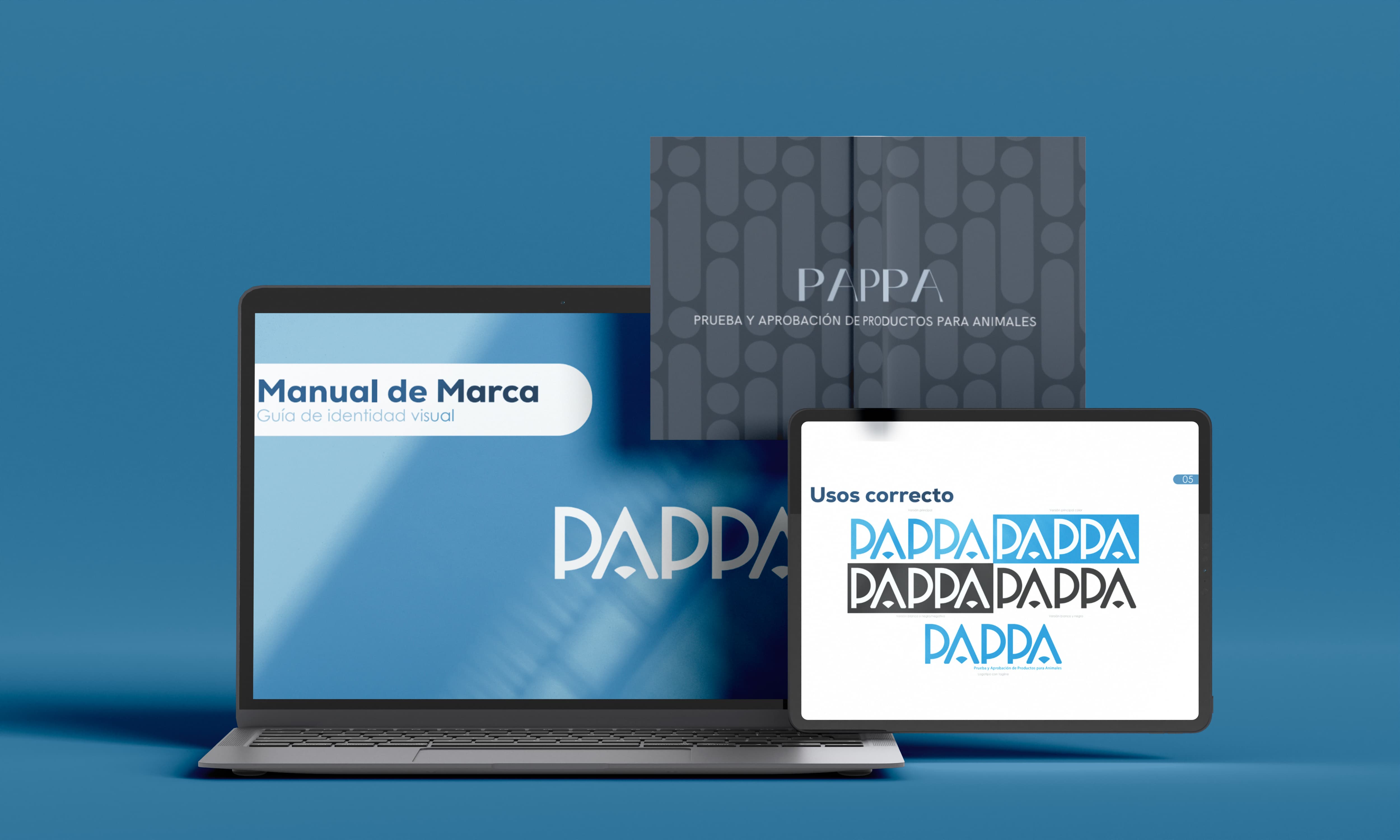El proyecto de identidad visual de PAPPA consistió en el desarrollo integral de un manual de marca diseñado para garantizar la coherencia, legibilidad y consistencia en todas sus aplicaciones gráficas. PAPPA, una marca enfocada en ofrecer alimentos de alta calidad para perros, necesitaba consolidar su presencia visual mediante una guía clara que definiera el uso correcto del logotipo, la selección tipográfica y la paleta cromática. Se estableció una arquitectura gráfica basada en tres fuentes: Nexa para títulos, Century Gothic para textos largos y Varygraphie VF para el logotipo, asegurando una identidad sólida y versátil. La paleta de colores fue cuidadosamente seleccionada para transmitir frescura, confianza y calidez, combinando tonos de azul con acentos neutros. Ver proyecto completo